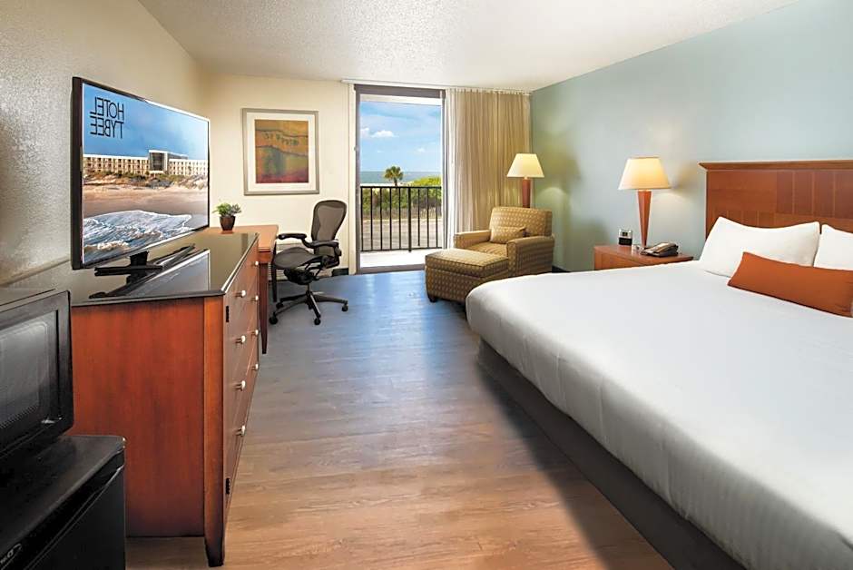 This room features a balcony with an ocean view, a microwave, a refrigerator, an in-room safe, and a desk.