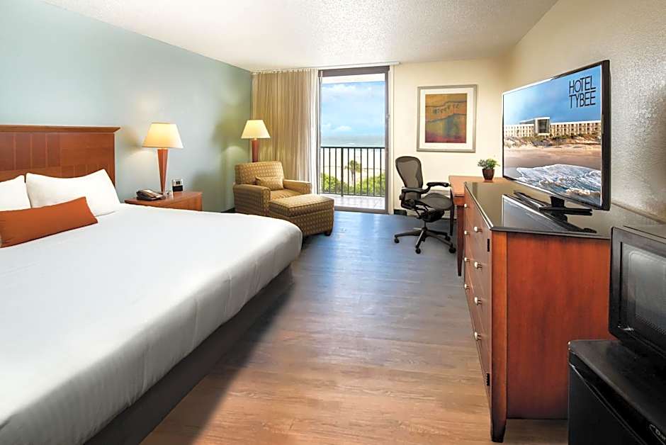This room features a balcony with an ocean view, a microwave, a refrigerator, an in-room safe, and a desk.